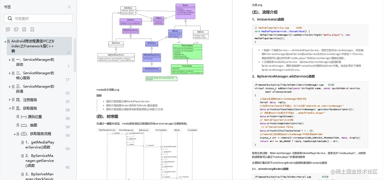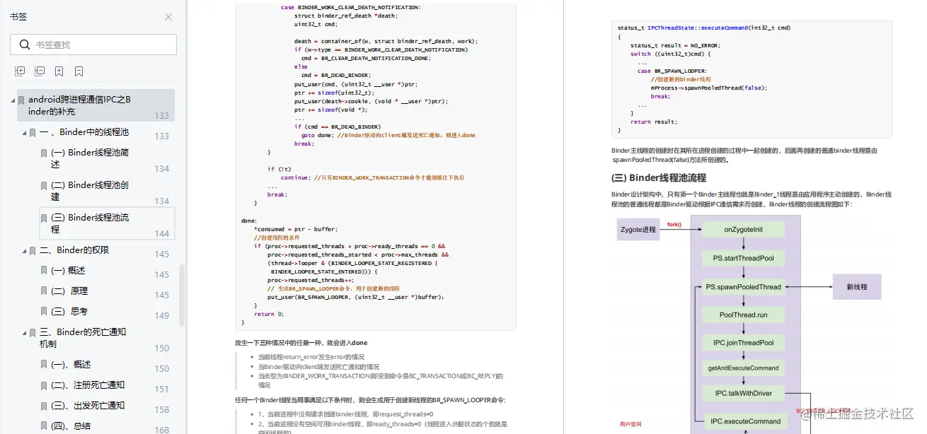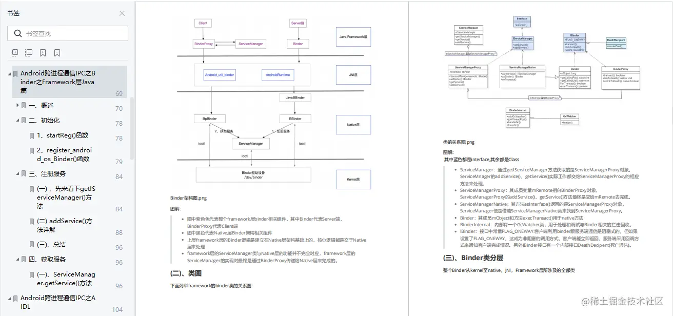 针对上述 Binder 面试真题,整理了一份 Binder 学习手册及相关面试文档,我总结如下技术点: