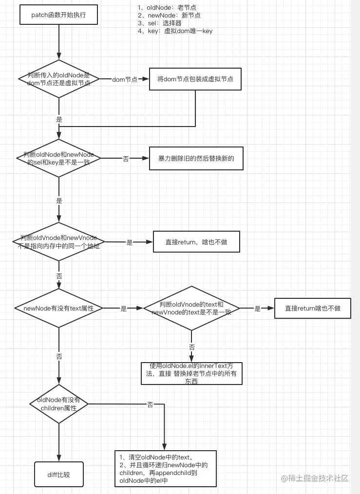 - 旧的头小于旧的尾,证明旧节点中还有未处理完的节点,循环遍历旧前和旧后之间的节点,并将他们移除