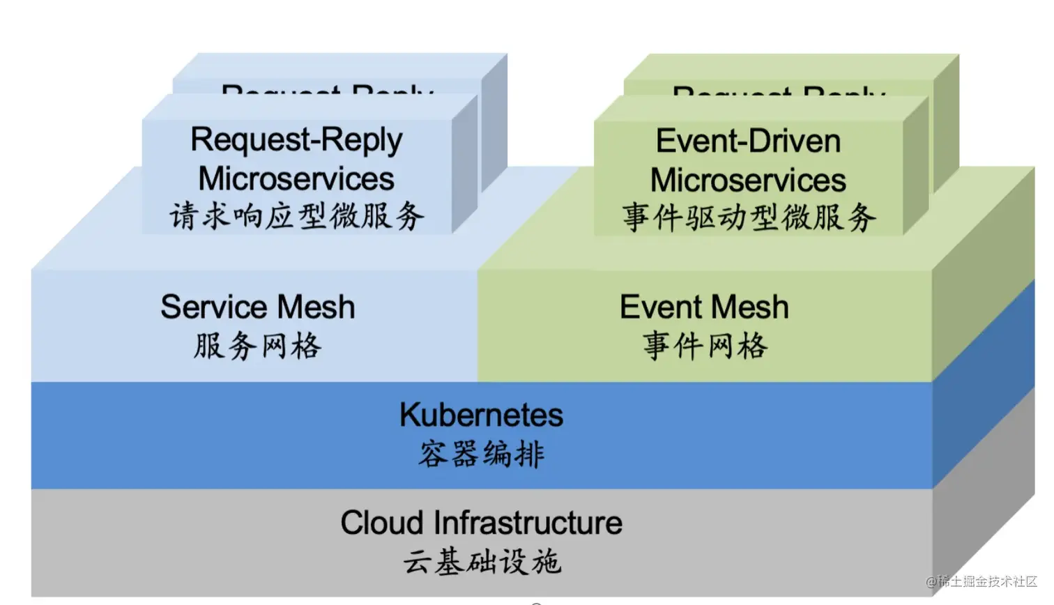 云原生时代,Service Mesh 被用作微服务的基础设施层,使通信变得更加灵活,可靠和快速。虽然服务网格可以很好地支持同步 RESTful 和一般<请求-回复>的交互,但它不支持异步、事件驱动的交互,也不适合将云原生微服务与遗留应用程序连接,也不适用于 IoT。 事件网格使企业能够支持事件驱动的体系结构,从最小的微服务部署,到以易管理、健壮、安全和架构良好的方式将应用程序扩展到混合云。 它提供了动态和全部实时地集成遗留应用程序、数据存储、现代微服务、SaaS、物联网和移动设备的能力。 事件网格为应用程序开发人员和架构师提供了构建和部署分布式事件驱动应用程序的基础,无论他们需要在何处构建和部署。