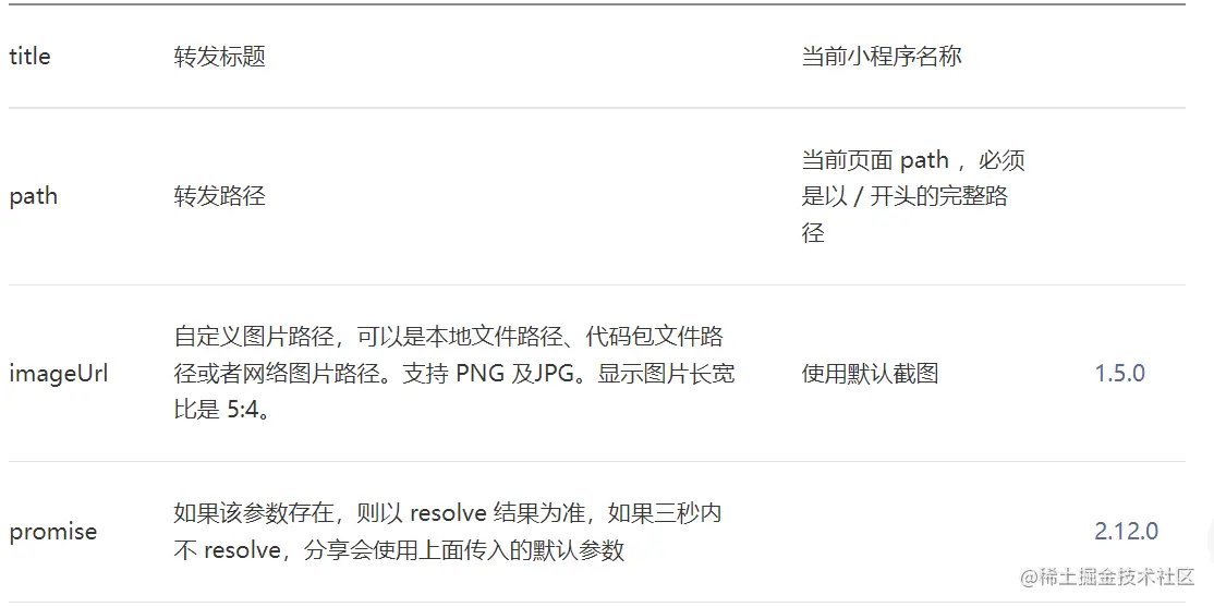 4、最重要的一点,分享给好友监听函数里支持promise写法,分享朋友圈不支持。分享的时候通常我们的分享id是通过接口获取的,如果是同步写法,return 时候是拿不到接口返回的分享id的,没法进行页面参数传递,于是想到了async,await。尝试以后发现分享好友可以拿到接口返回的分享id传递给页面。
