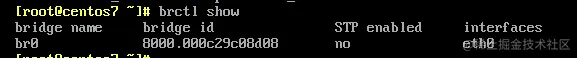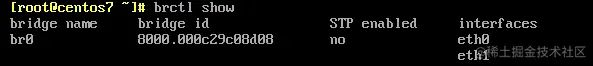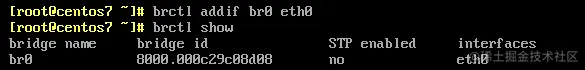 [root@centos7 ~]# brctl addif br0 eth0