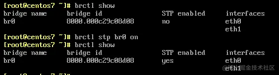 [root@centos7 ~]# btctl stp br0 on