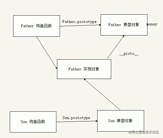 (2) 为 son 准备原型链连接 son.__proto__ = Father.prototype