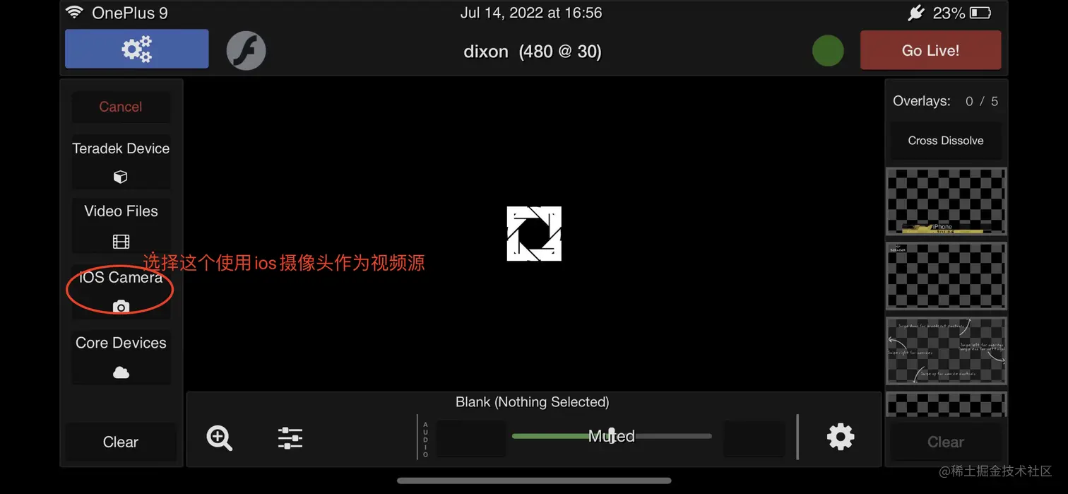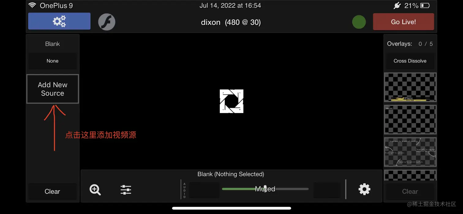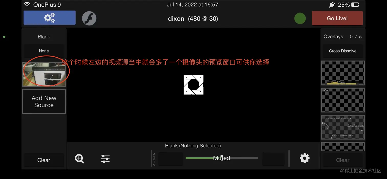在主界面中 需要添加摄像头作为直播内容