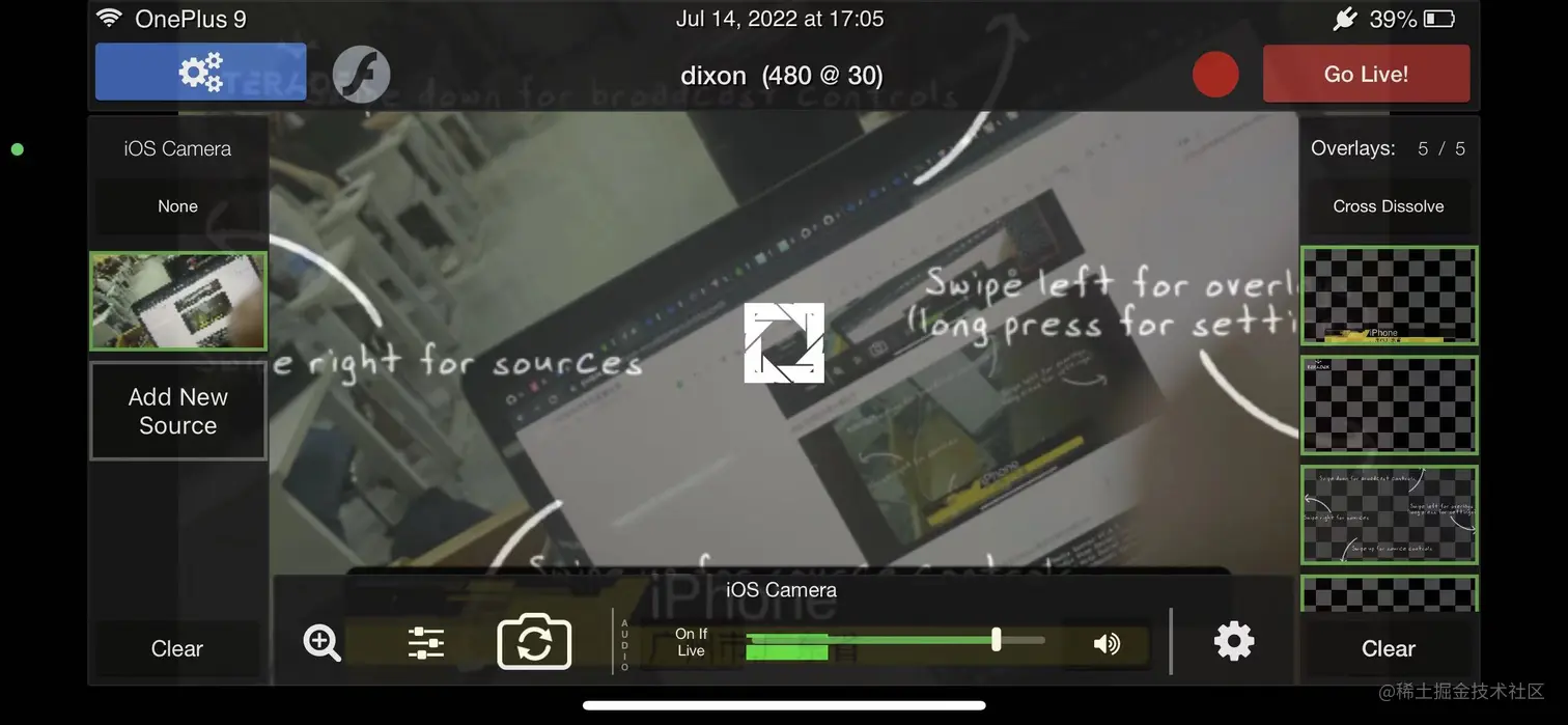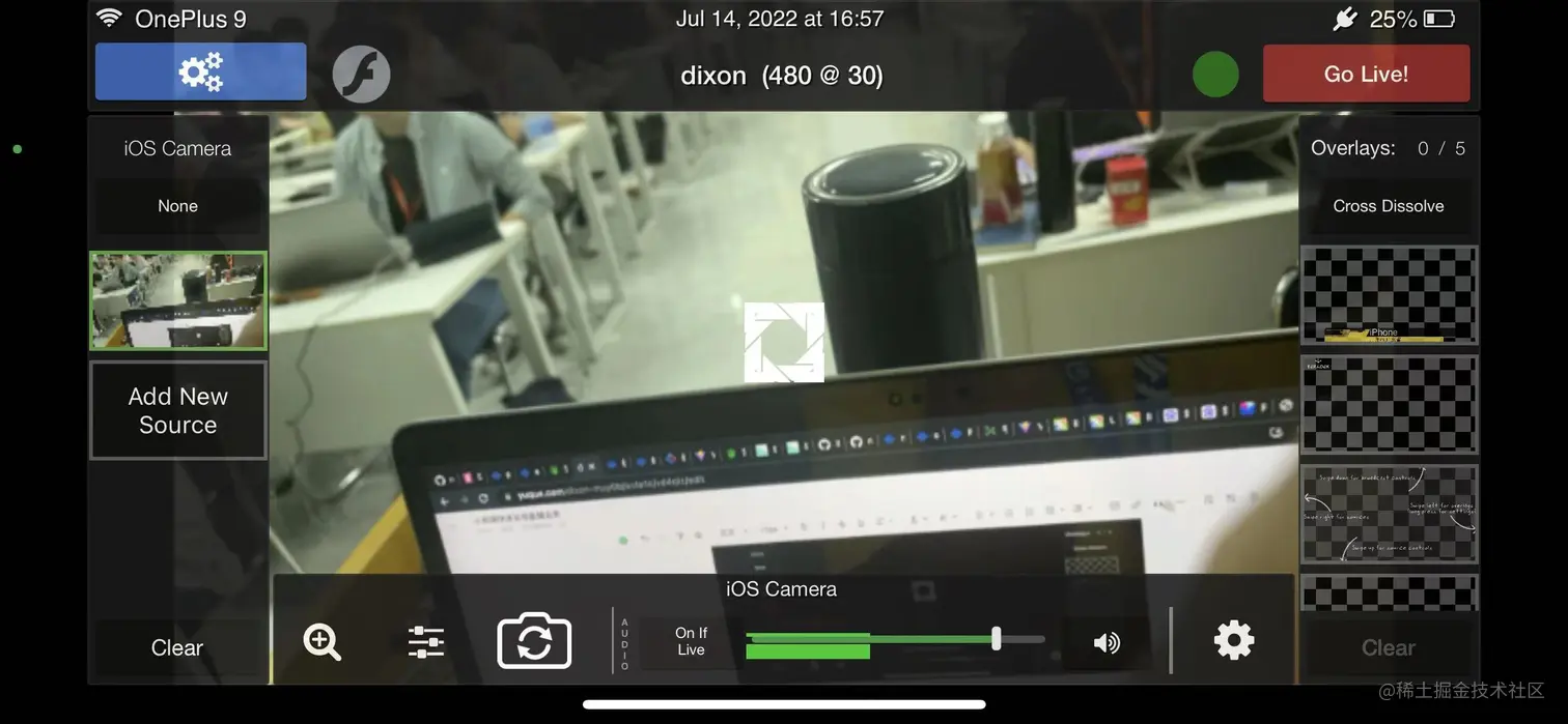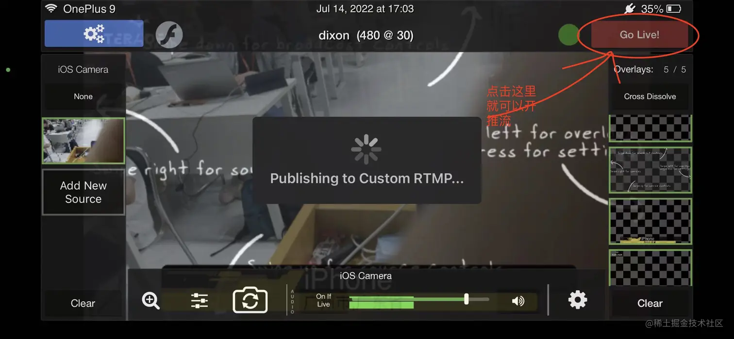 在主界面点击右上角的 Go Live! 开始推流