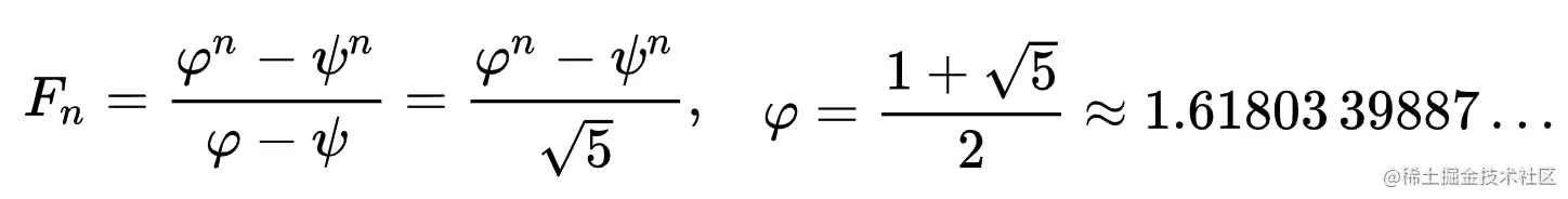 - 封闭式表达式:与由具有常数系数的线性递归定义的每个序列一样,斐波那契数具有封闭形式的表达式。它被称为比奈公式,以法国数学家雅克·菲利普·玛丽·比内命名,尽管亚伯拉罕·德·莫弗和丹尼尔·伯努利已经知道它。