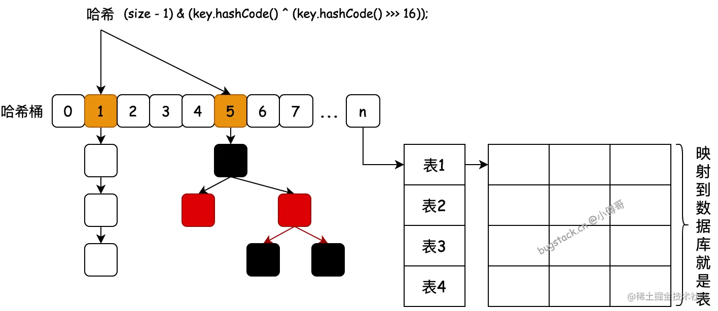 例如在 Java 中对数据的散列算法:HashMap 用到的是一次扰动函数下的哈希散列、ThreadLocal 用到的斐波那契散列。而通常数据库路由组件用到的是整数模除法散列,这也是实践中最简单和最常用的方法之一。