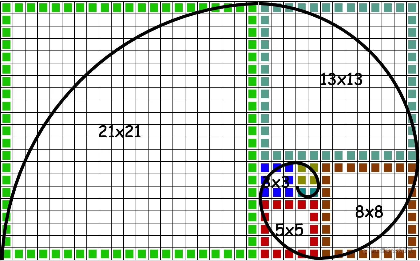 - 从 F2 开始任意一位与前一位相比的比值,都无限趋近于 (√5 - 1)/2 = 0.618 因此基于黄金分割的计算应用,也被称为斐波那契应用。