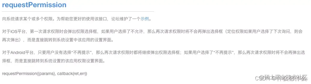requestPermission:使用交互弹窗的方式,来向用户申请相关的应用权限