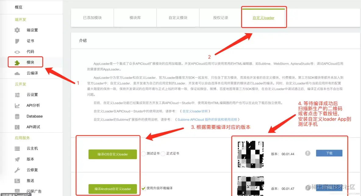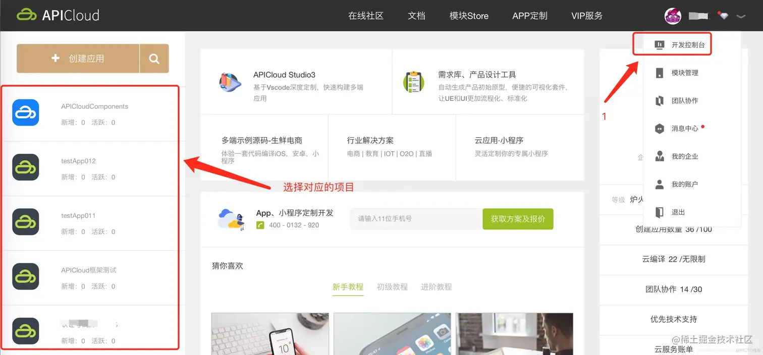 3.1.1 登录APICloud官网控制台去进行编译