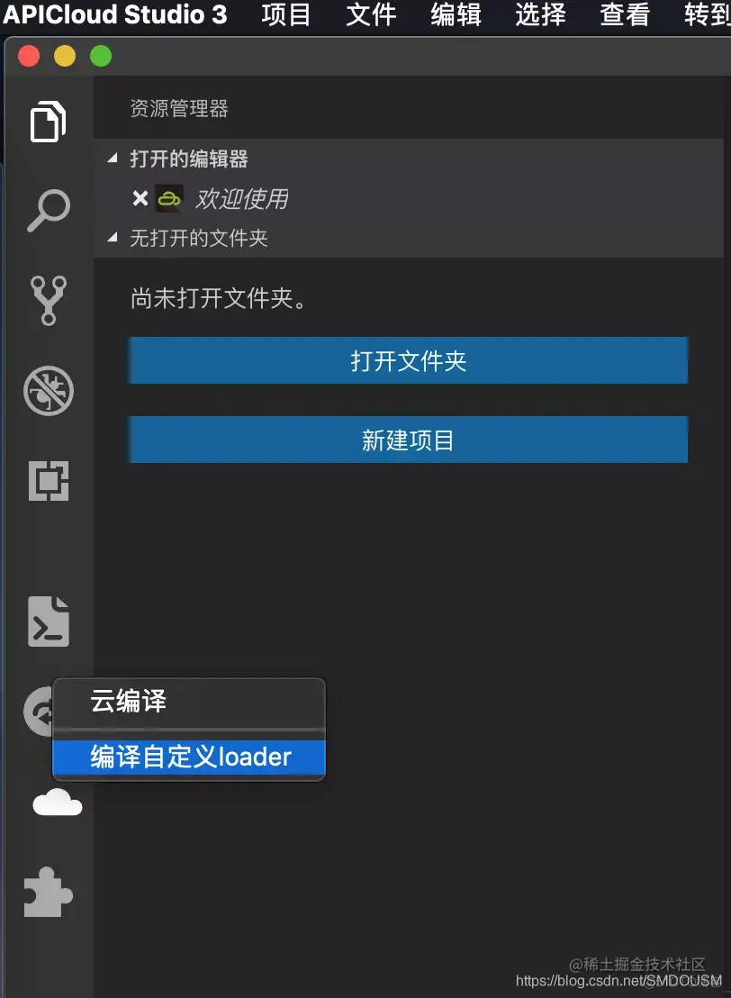 3.1.2 使用APICloudStudio3 开发工具快捷打开自定义loader网页窗口,去进行编译