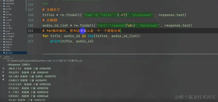 3. 解析数据, 提取我们想要的数据内容 - 音频名字 - 音频ID