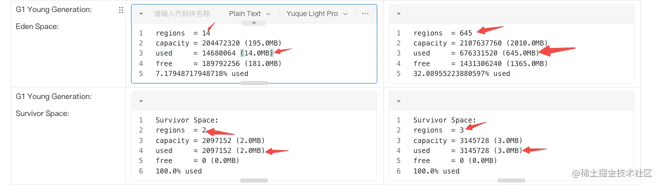- 1、为什么在同等条件下,内存使用差距会这么大?eden 区的分配和 region 的个数是由什么决定的?