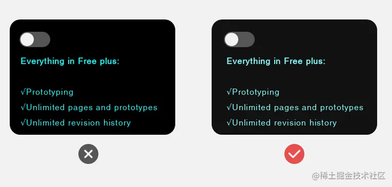 这种调整往往在深色模式下会失效,过浅的文字会看不清楚,破坏可读性。所以,对对比度的敏感在深色模式下也特别重要。