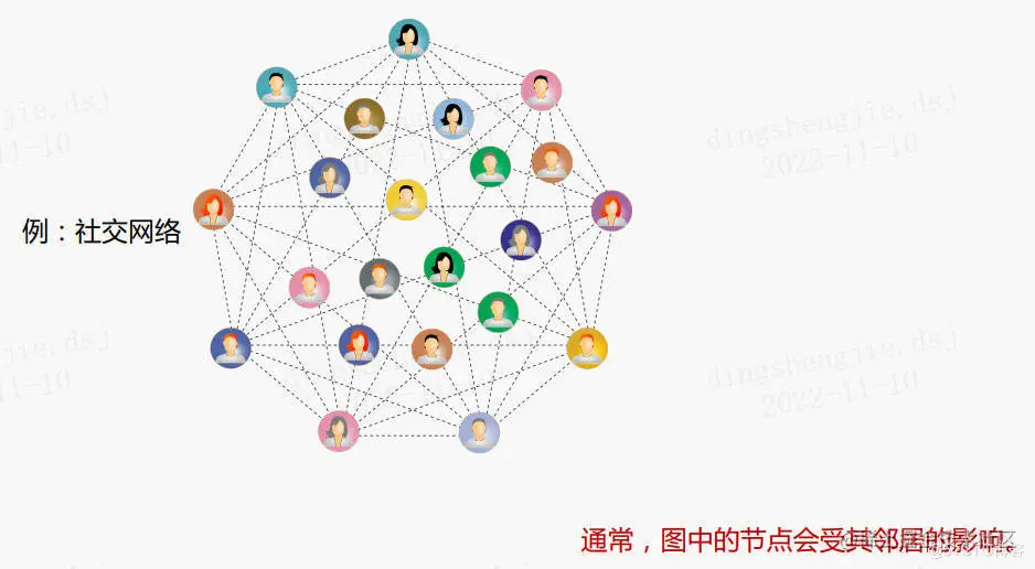 当然,这种情况也不仅仅只存在社交网络这个范围内,在很多其他的图,比如推荐系统等等,节点都会受到邻居的影响。