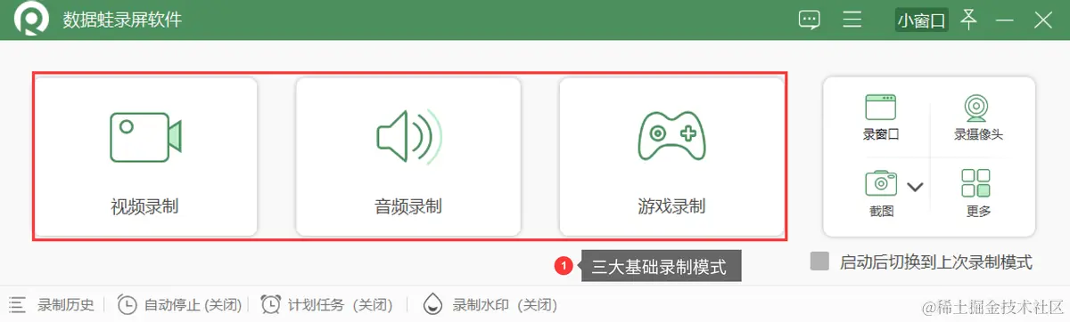 最后,数据蛙录屏软件的录屏操作也很简单。这里小编以【视频录制】的模式做一个简单的演示。