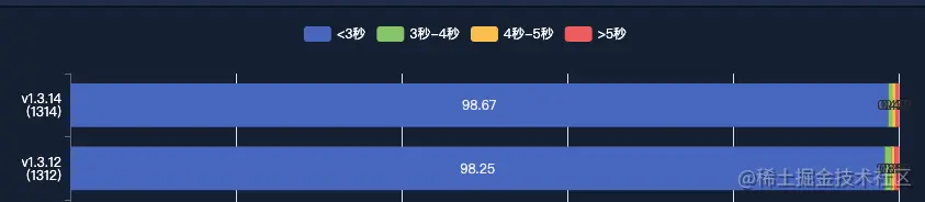 经过第二个版本的优化后,启动耗时占比3s以内的占比差不多在98.6上线波动: