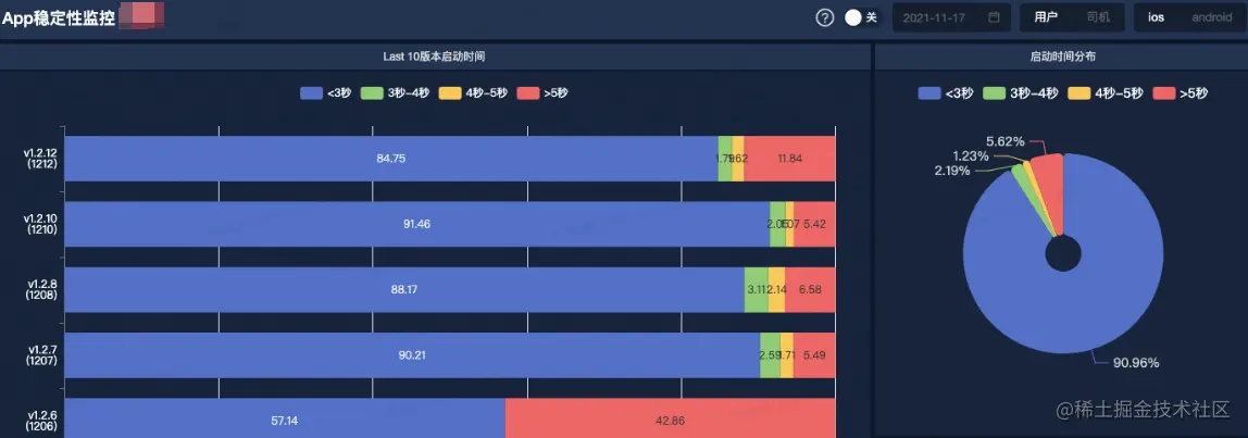 经过第一个版本的优化后,启动耗时占比3s以内的占比差不多在98上线波动: