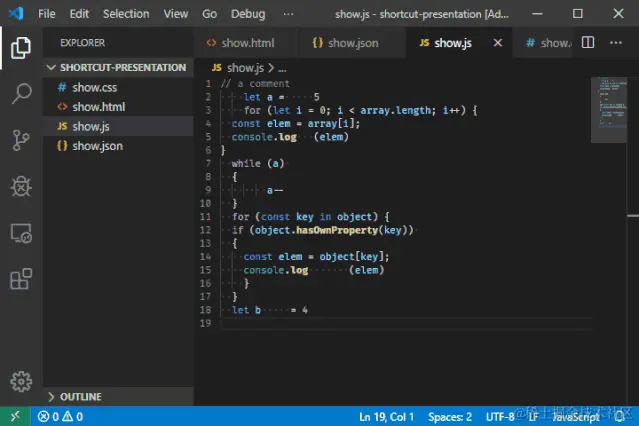 选中 CTRL + K CTRL + F = 格式化选择部分