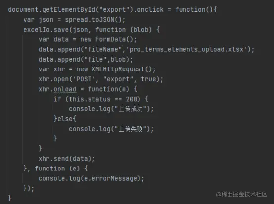 通过SpreadJS ExcelIO的功能将内容导出成Excel的blob流。之后将blob流传至服务器端,在服务器端进行保存Excel文件的操作。