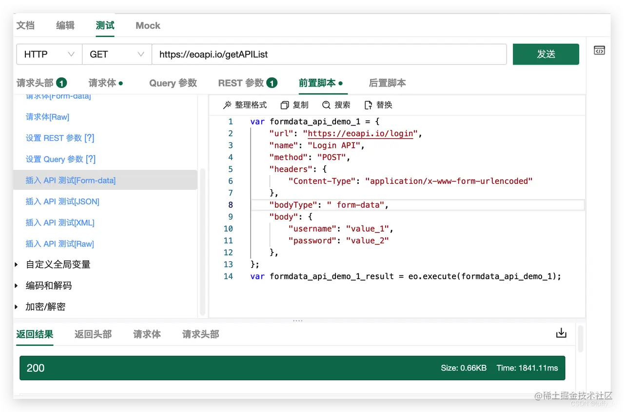 在测试过程中,经常遇到在测试前需要登录的情况,在 Eoapi 中可以通过两种方式达成结果。