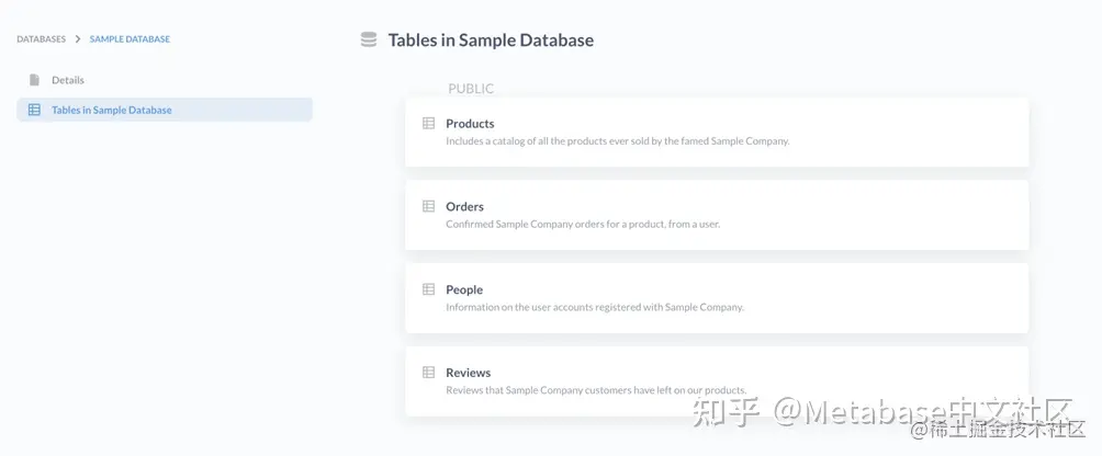 Metabase支持很多不同的数据库,并随附示例数据库供你玩玩。一旦您连接了数据源,Metabase就为您提供了许多工具来探索它们。