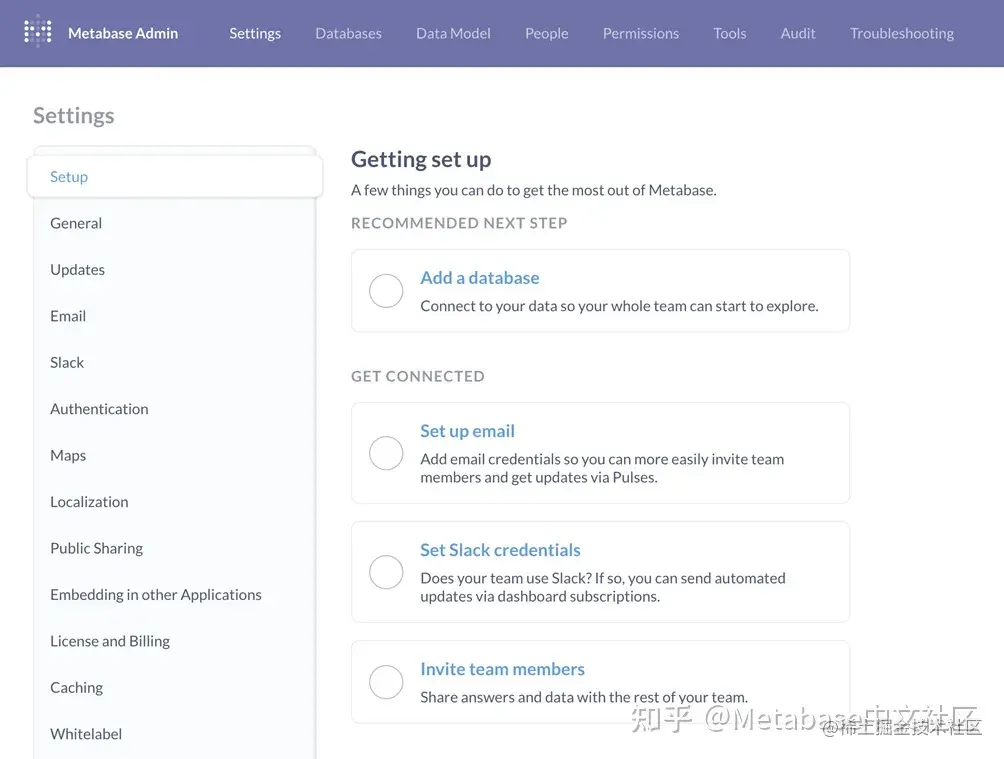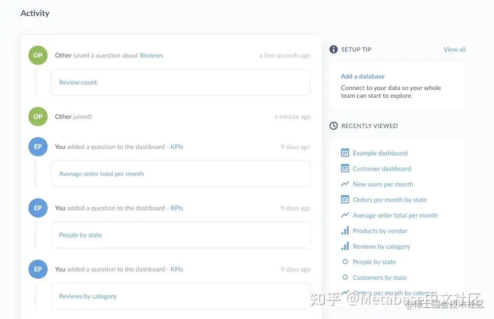Metabase是一个开源的商业智能工具。Metabase允许您询问有关数据的问题,并以有意义的格式显示答案,无论是条形图还是详细表格。