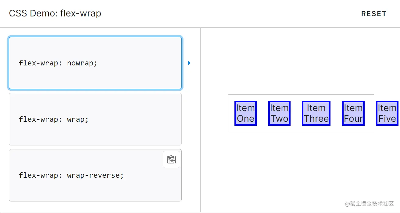 nowrap(初始值)flex的元素被摆放到到一行,这可能导致flex容器溢出。 -