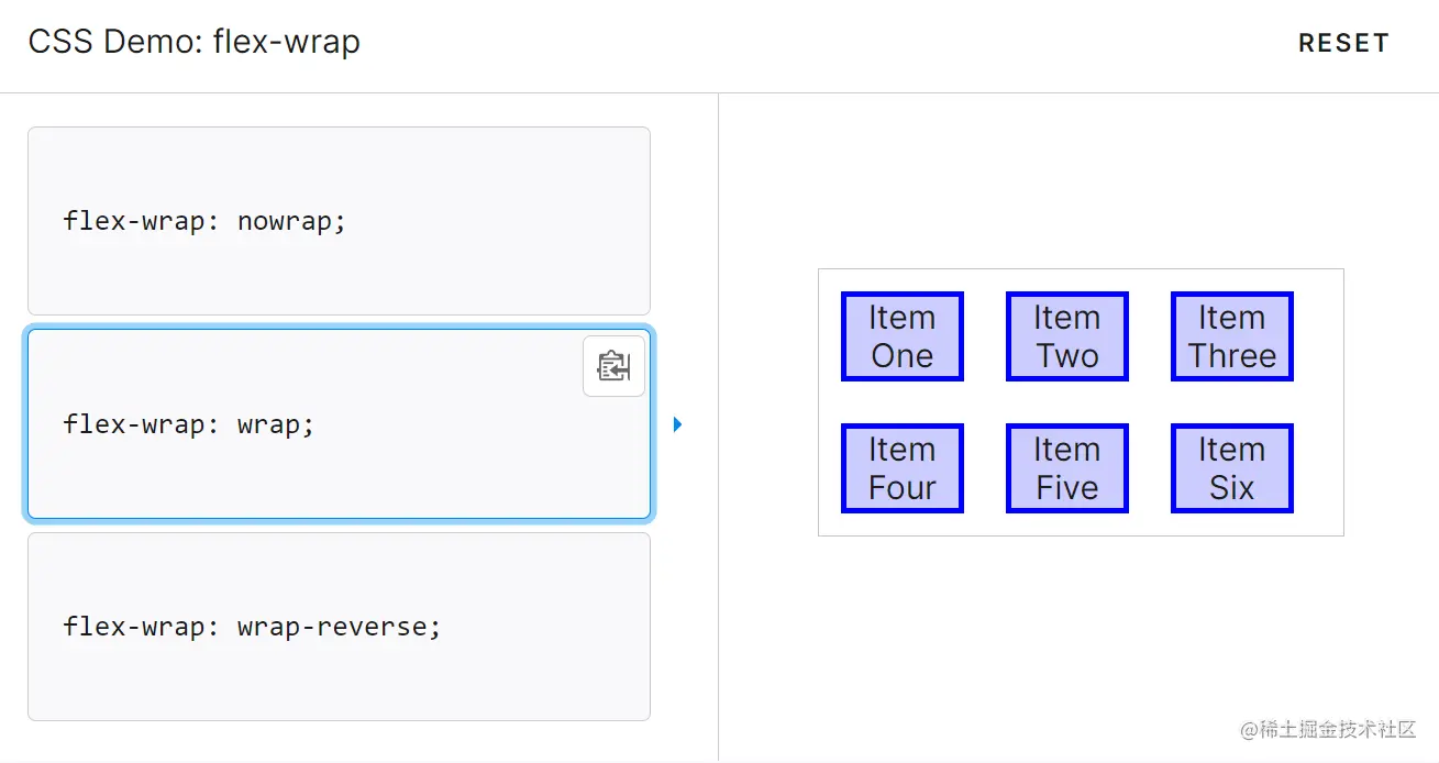 flex元素单行显示还是多行显示。如果允许换行,这个属性允许你控制行的堆叠方向。