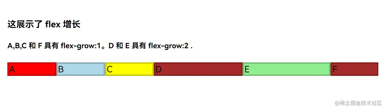 D、E元素 flex-grow 素 flex-grow 值为 2