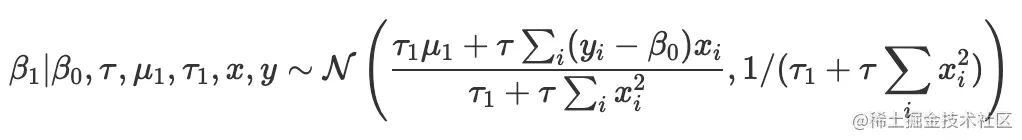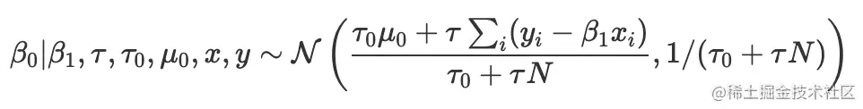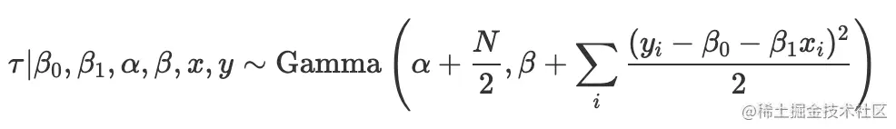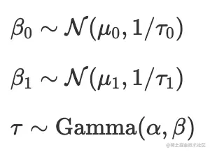 参数为:β0 (the intercept), β1 (the gradient) and precision τ