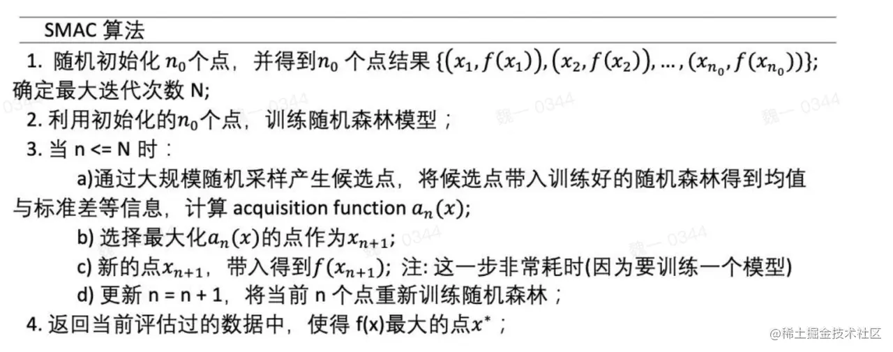 在对新的超参数组合进行搜索的时候,会同时在已经表现比较好的超参数组合附近进行搜索,和随机选取点进行预测。
