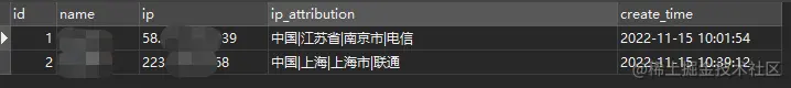 由表可以看到,我们创建了login_log表,即登录日志表,字段名有id(主键)、name(登陆人姓名)、ip(登录ip)、ip_attribution(ip归属地信息)、create_time(创建时间)。