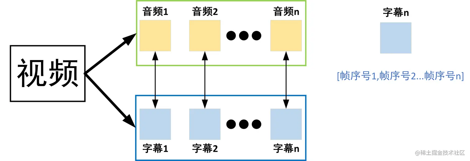2. 判断音频开始和结束,一般一个视频的音频和字幕为了让观众看的顺畅,在时间上都是有对应关系。我只需要判断相同字幕开始视频帧和结束视频帧就ok了。