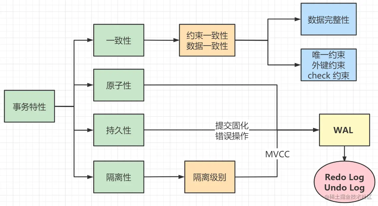 原子性: 原子性与 WAL 有很大的关系。需要从 Redo 重做日志恢复的数据。如果事务没有提交,缓冲池的脏页被刷新,那么不应该存在的数据怎么会消失?它需要通过撤销来实现,这是通过 Undo 重做来保证的。因此,最终原子性由 Redo 的 WAL 机制保证。
