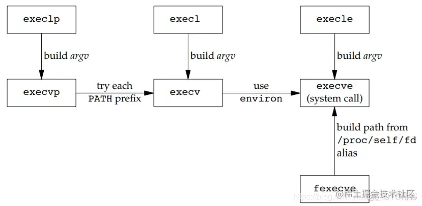 关于execve和execvp的区别可见下图。csapp的实现中使用的是最底层的system call execve,这个方法不仅需要手动传入环境参数,而且执行命令的时候需要写全路径,不能写别名。比如如果我们想直接ls -al ,会报错说Command not found, 需要使用/bin/ls -al 才可以。这个问题execvp帮忙包装了。