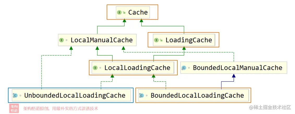 通过UML图,可以清晰的看出其与Cache之间的继承与实现链路情况: