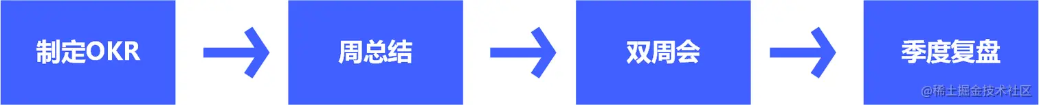 在引入OKR一个季度后,随着团队对OKR了解的深入,以及结合前期执行过程中吸取的经验,为了更好的在日常工作中跟踪OKR的执行,我们沉淀出了初步流程(我们称之为阶段2.0)。