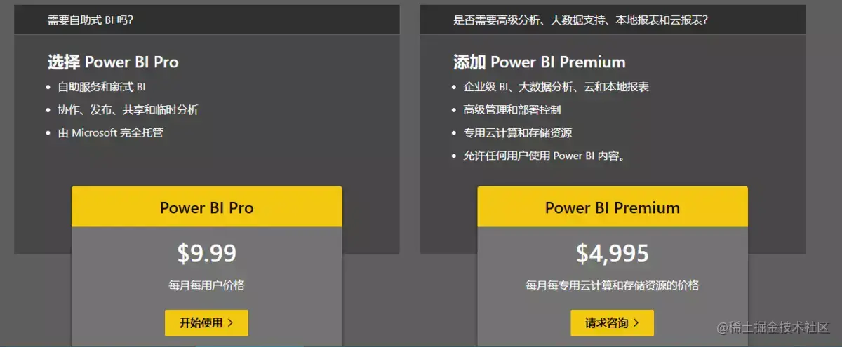 Power BI Desktop是免费的标准版本,不能分享仪表板。Power BI Pro免费试用两个月,想要分享或者使用更多功能,就要收费,具体如下。