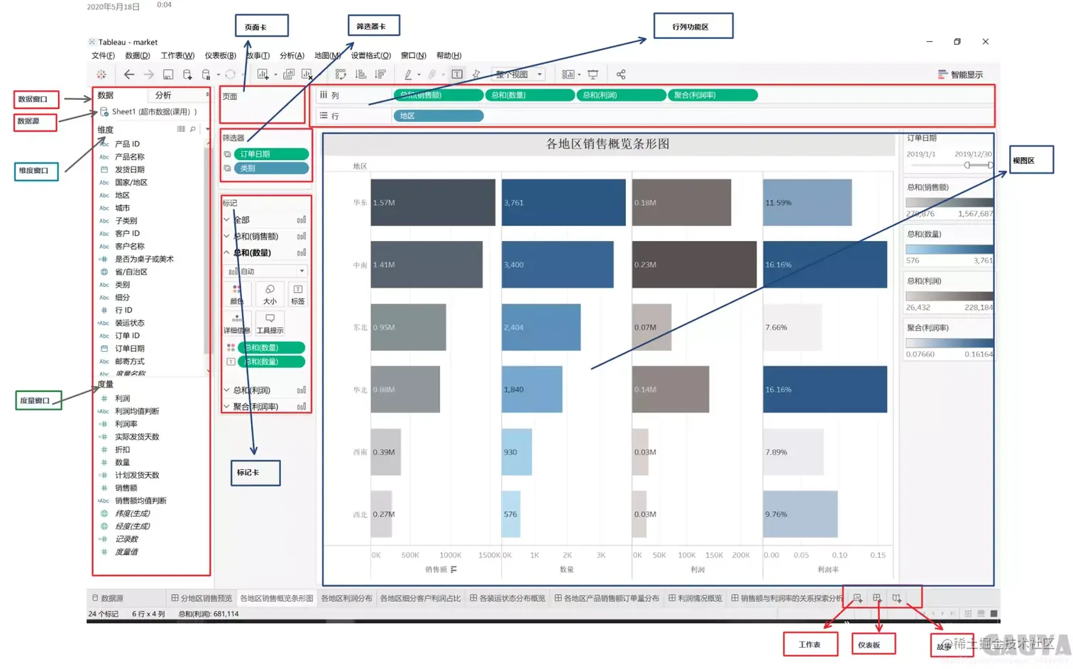 Tableau完全配得上“简单易用”这四个字,数据可视化非常强大,操作也很简单,基本上只要把数据维度拖到工作区,选择图表类型和配色,就可以生成一张图表。
