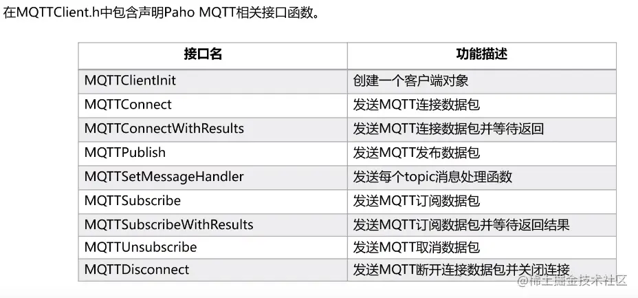 样例代码在OpenHarmony源码目录/device/board/bearpi/bearpi_hm_nano/app/D5_iot_mqtt,源码下载路径参考文章末尾。开发应用主要涉及以下几个API应用: