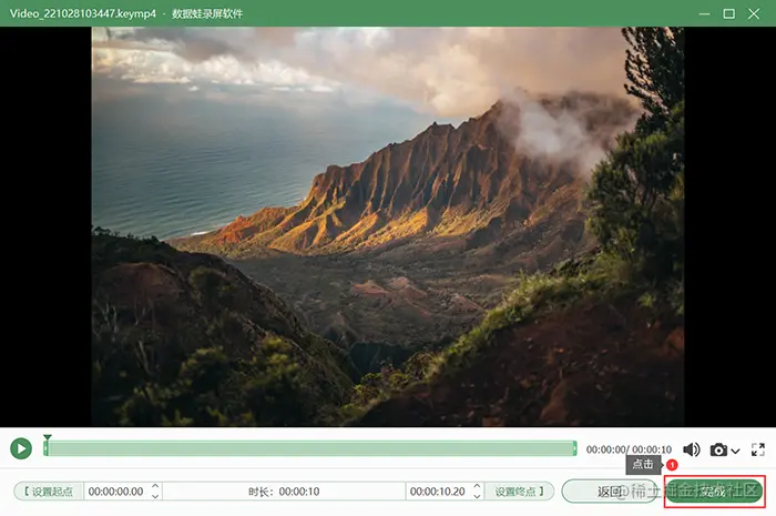 第3步: 录制结束后,在“预览窗口”进行预览播放,点击“完成”即可保存录制视频。