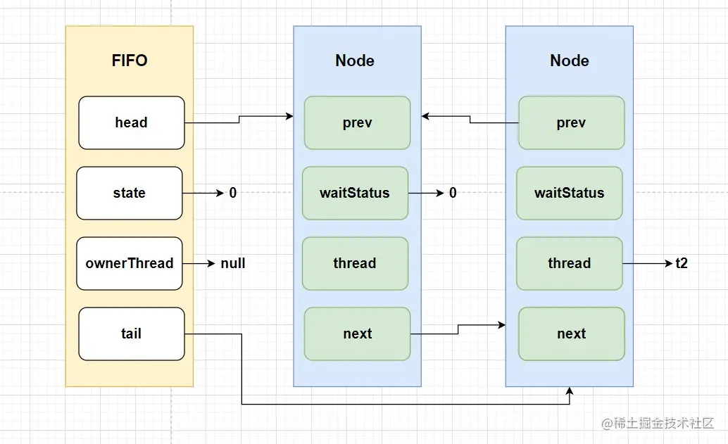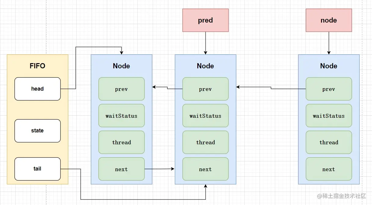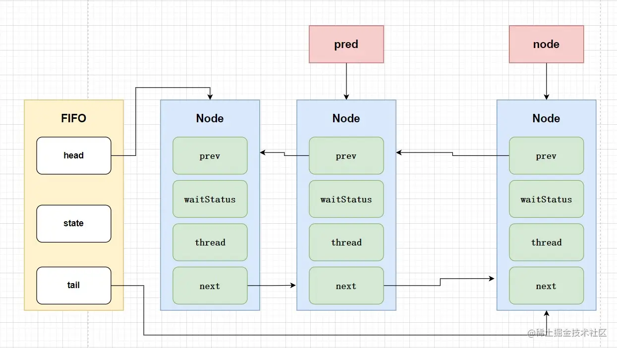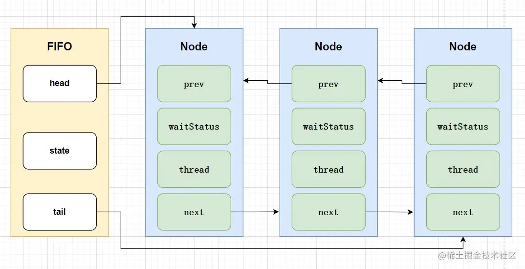 Sync 是通过继承AbstractQueuedSynchronizer来实现的,没错,AbstractQueuedSynchronizer就是AQS的全称。AQS内部维护着一个FIFO的双向队列(CLH),ReentrantLock也是基于它来实现的,先来张图感受下。