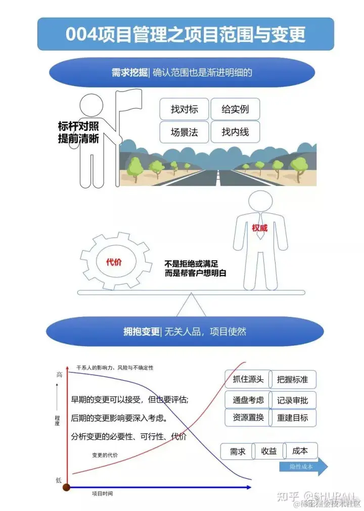 去看项目书籍又没有时间去琢磨,而且还容易看不懂,但是书其实不能不看。不过这里有几个可以让大家通俗易懂的项目管理图表,相对文字书籍,这个更能让大家了解。