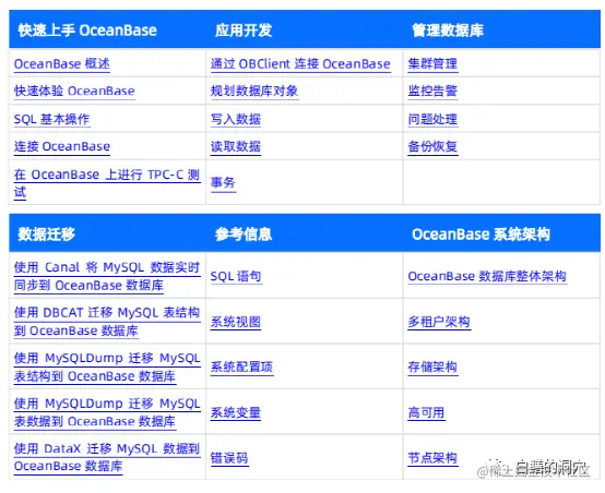 OceanBase 在手册中还提供了一个《文档概览》手册,让用户可以全面了解 OceanBase 的文档体系,还是挺有用的。