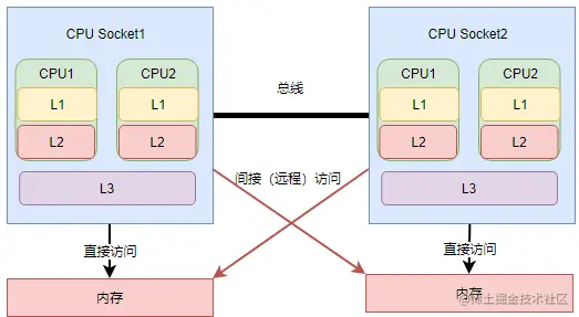随着CPU进入多核时代,多核CPU通过一条数据总线访问内存延迟很大,因此NUMA架构应运而生,NUMA架构全称为非一致性内存架构 (Non Uniform Memory Architecture),系统的物理内存被划分为几个节点(node),每个node绑定不同的CPU核,本地CPU核直接访问本地内存node节点延迟最小。