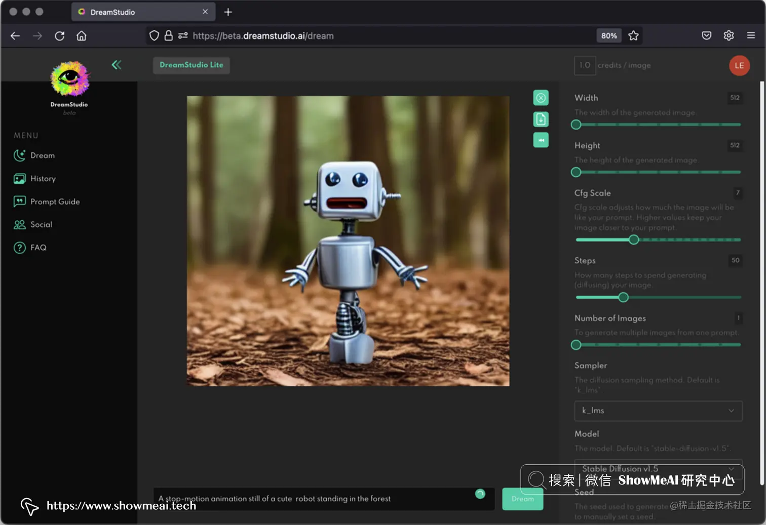 - 📘 Dream Studio Web 应用程序:beta.dreamstudio.ai/
