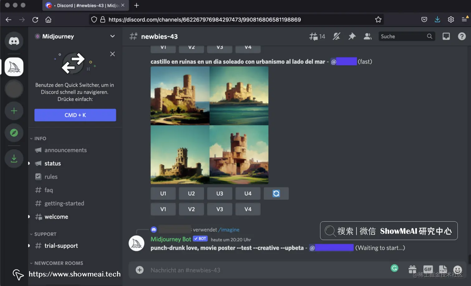 生成图像 Midjourney ,您可以使用 📘Midjourney Discord 服务器。