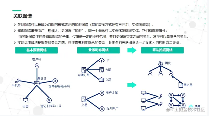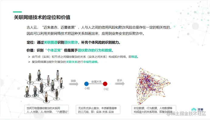 关联网络技术指的是通过关联图谱识别团伙欺诈、补充个体风险的识别能力。