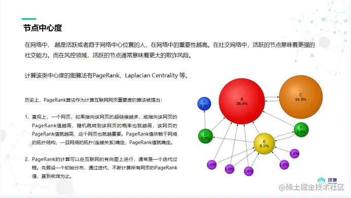 在网络中,越是活跃或趋于网络中心的位置的人,在网络中的重要性越高。在社交网络中,活跃的节点通常意味着更强的社交能力;但在风控领域,活跃的节点通常意味着较大的风险。